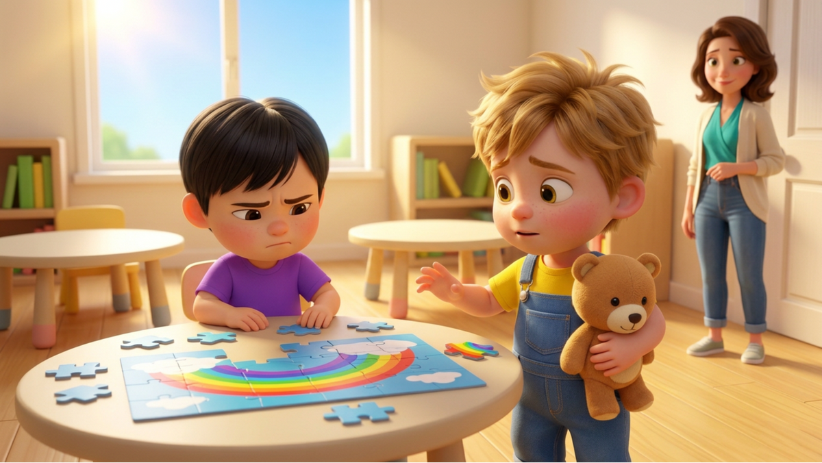 $39.99A child and a parent navigate three real friendship moments — a broken crayon, a knocked-over tower, a hurtful accident — where saying sorry feels almost impossible, but choosing courage over comfort changes everything. Because a real apology isn't just words: it's looking someone in the eye, meaning it, and doing something to make it right again.
